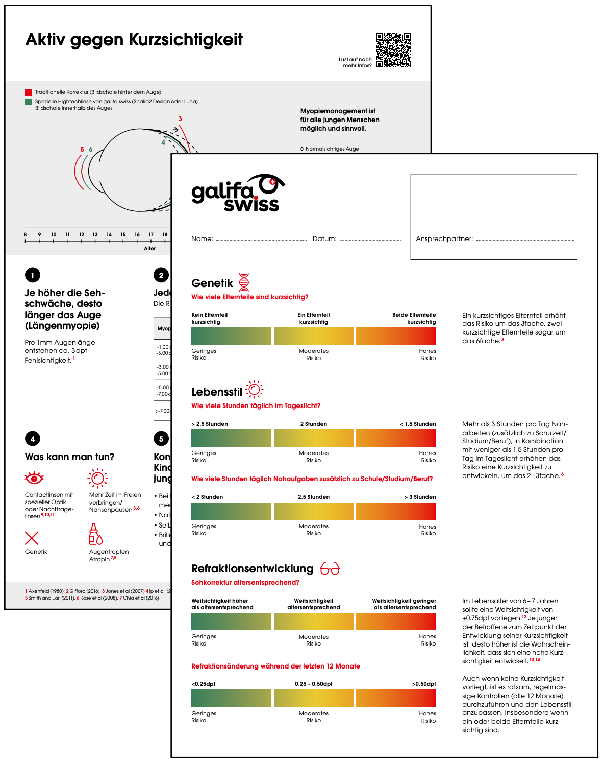 Bestellen Sie noch heute den Risikoprofilblock im geschützten Bereich für die Ermittlung der Gefährdung der Progression der Kurzsichtigkeit Ihrer jüngeren Kunden.